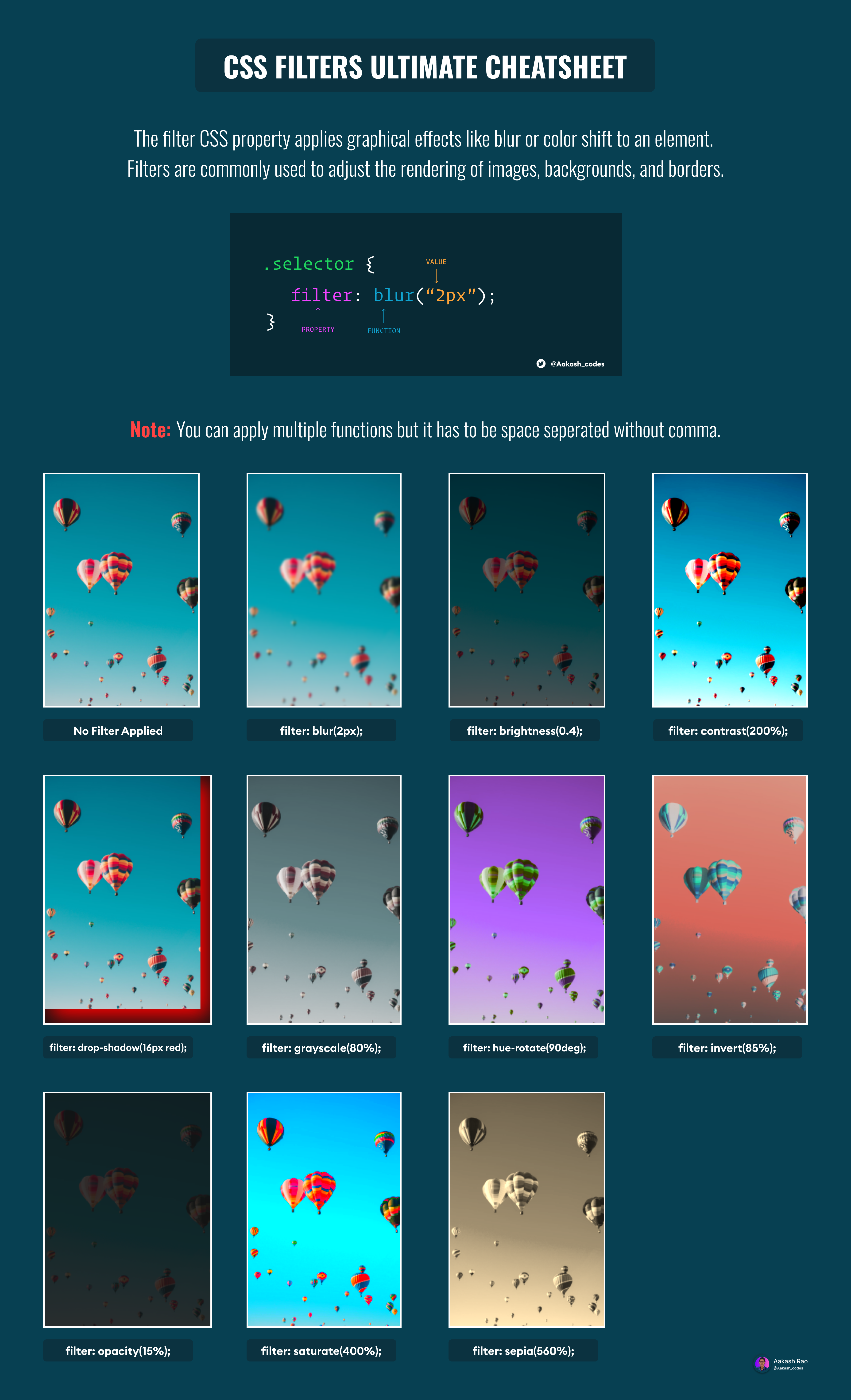 1st {CSS Filters CheatSheet - All filters in one frame}